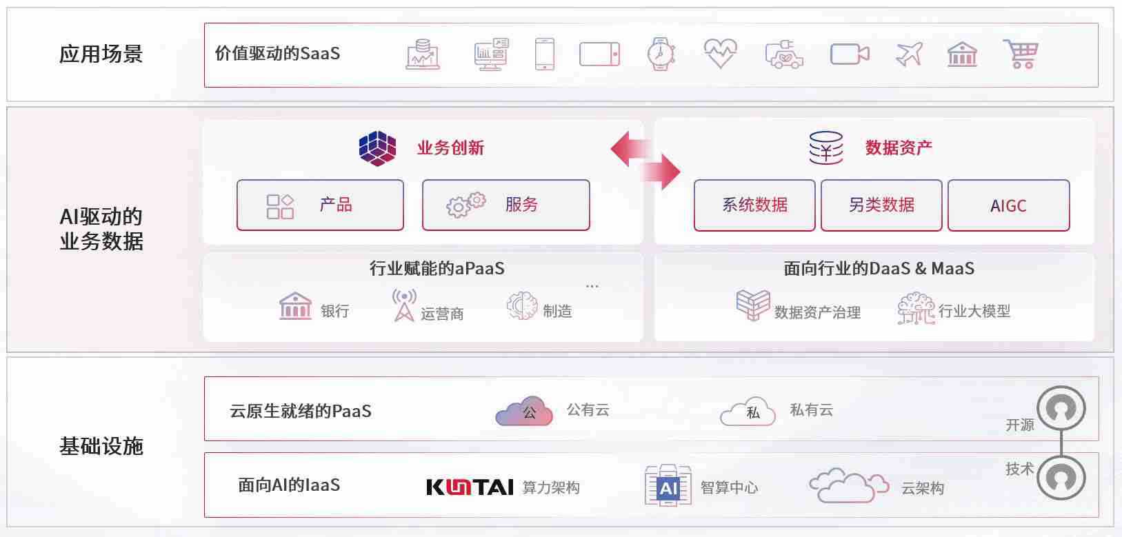 数字时代,,围绕企业数字化转型的关键要素,,,,upay钱包数码开创性的提出数云融合战略和技术体系框架,,,,着力在云原生、、、数字原生、、AI原生和信创产业上架构产品和服务能力,,为处在不同数字化转型阶段的快消零售、、、、汽车、、、、金融、、、医疗、、、政企、、、教育、、运营商等行业客户提供泛在的敏捷IT能力和融合的数据驱动能力,,,构建跨界融合创新的数字业务场景和新业务模式,,,,助力企业级客户建立面向未来的核心能力和竞争优势,,,,全面推动社会的数字化、、智能化转型升级。。。。